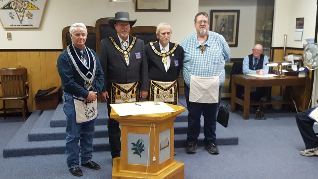 On October 3, 2019 Cimarron Lodge #37 consolidated with Gate City Lodge #11 in Raton, N.M. The consolidation was presided over by Most Worshipful Ralph A. Easley, Grand Master of Masons in New Mexico.